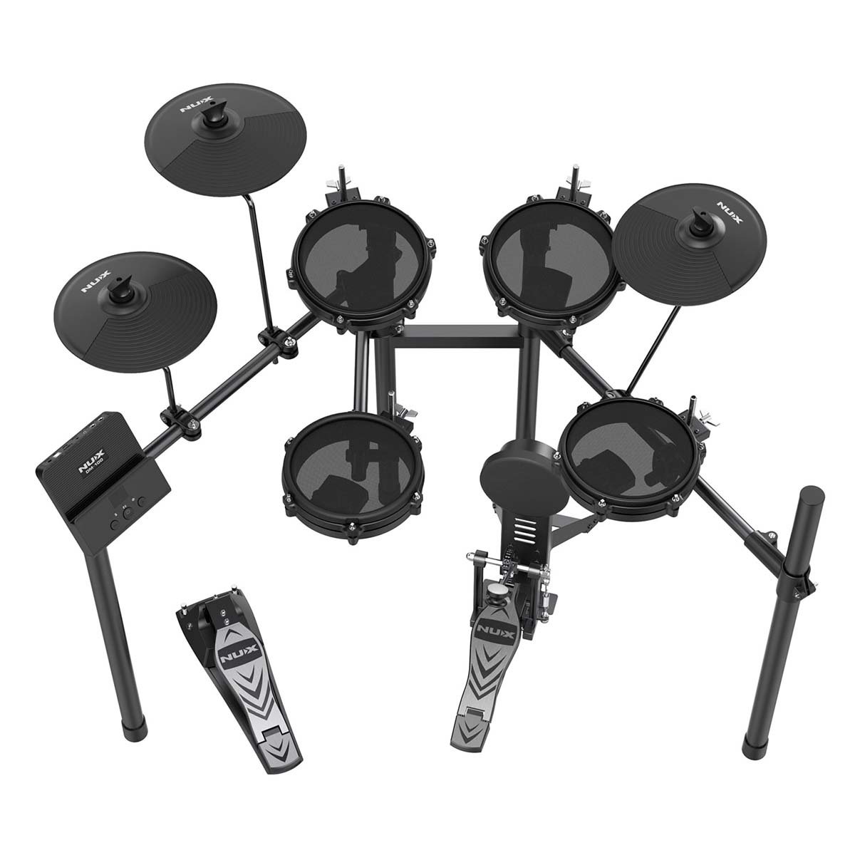 El NUX DM-110 es un kit de batería digital portátil de alto rendimiento diseñado para músicos principiantes y de nivel intermedio. Con un diseño compacto y robusto, este kit ofrece una experiencia de toque realista gracias a su estructura metálica y pads de goma de alta calidad. Su disposición es más natural, alineada con la de una batería acústica, lo que asegura una sensación cómoda y auténtica al tocar.