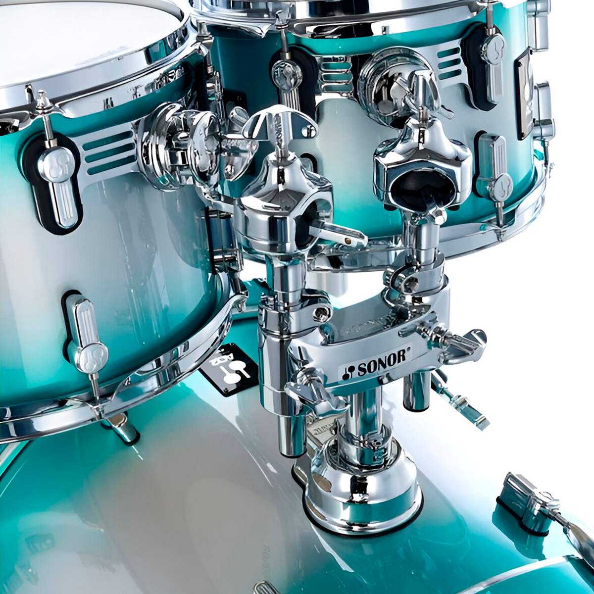 Los tambores de la serie AQ2 vienen con un hardware de nuevo diseño y un nuevo sistema de montaje de toms: “SmartMount”. Este minimalista y funcional montaje tiene el verdadero diseño alemán y el espíritu de ingeniería: Un sonido óptimo con una cantidad mínima de hardware en el vaso del tambor.