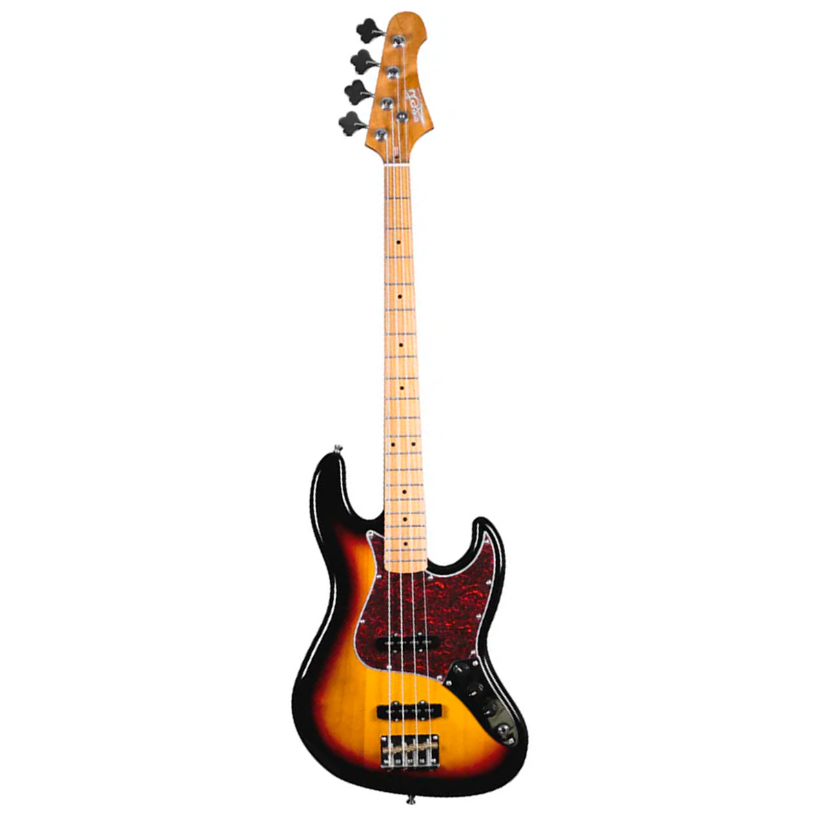 El bajo eléctrico JET JJB-300 SB combina diseño clásico JB con cuerpo de álamo horneado y acabado sunburst. Equipado con pastillas JB, ofrece ajuste de sonido con controles de volumen y tono, y detalles estéticos como afinadores cromados vintage y golpeador de imitación de carey.