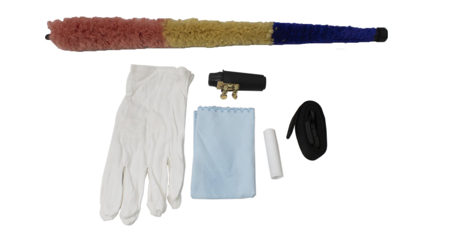 Unestuche ligero, una correa para el cuello, un paño de limpieza, una varilla de limpieza, un par de guantes y una caña.