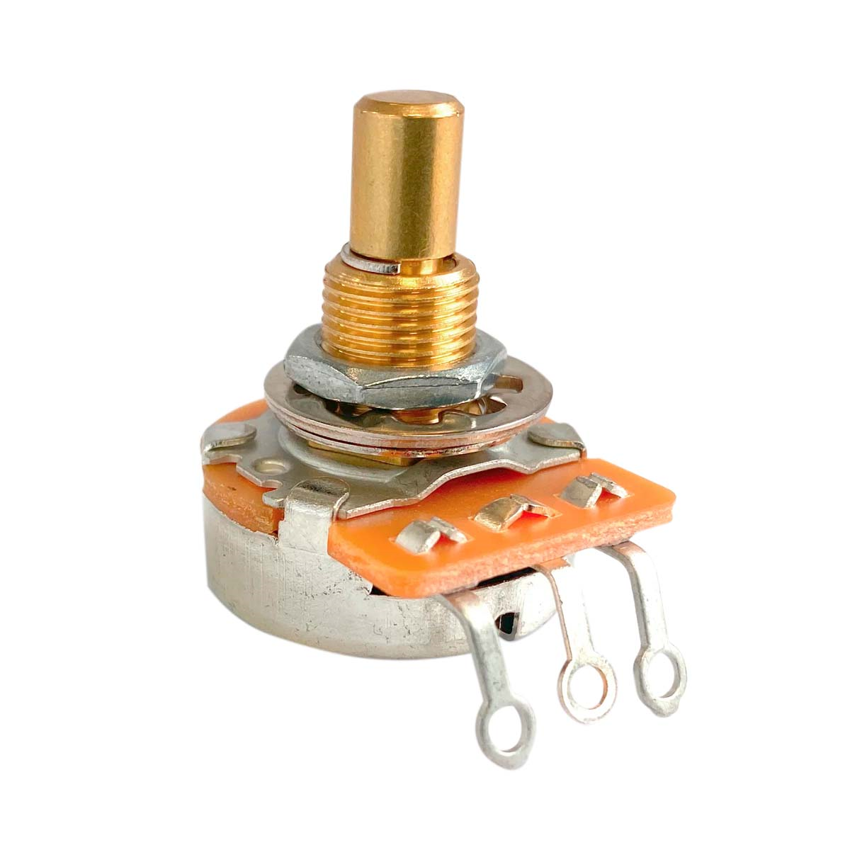 Los potenciómetros AxLabs cuentan con manguitos de eje de latón mecanizados y están lubricados con 3 tipos diferentes de grasa utilizada en áreas específicas de las piezas móviles para una rotación ultrasuave. Luego, los ejes se refuerzan con un anillo de retención colocado para mayor resistencia y reducir la fricción. Por último, se utilizó una carcasa de acero niquelado para facilitar el agarre de la soldadura, así como para lograr el aspecto clásico y de alta gama de los potes antiguos.
