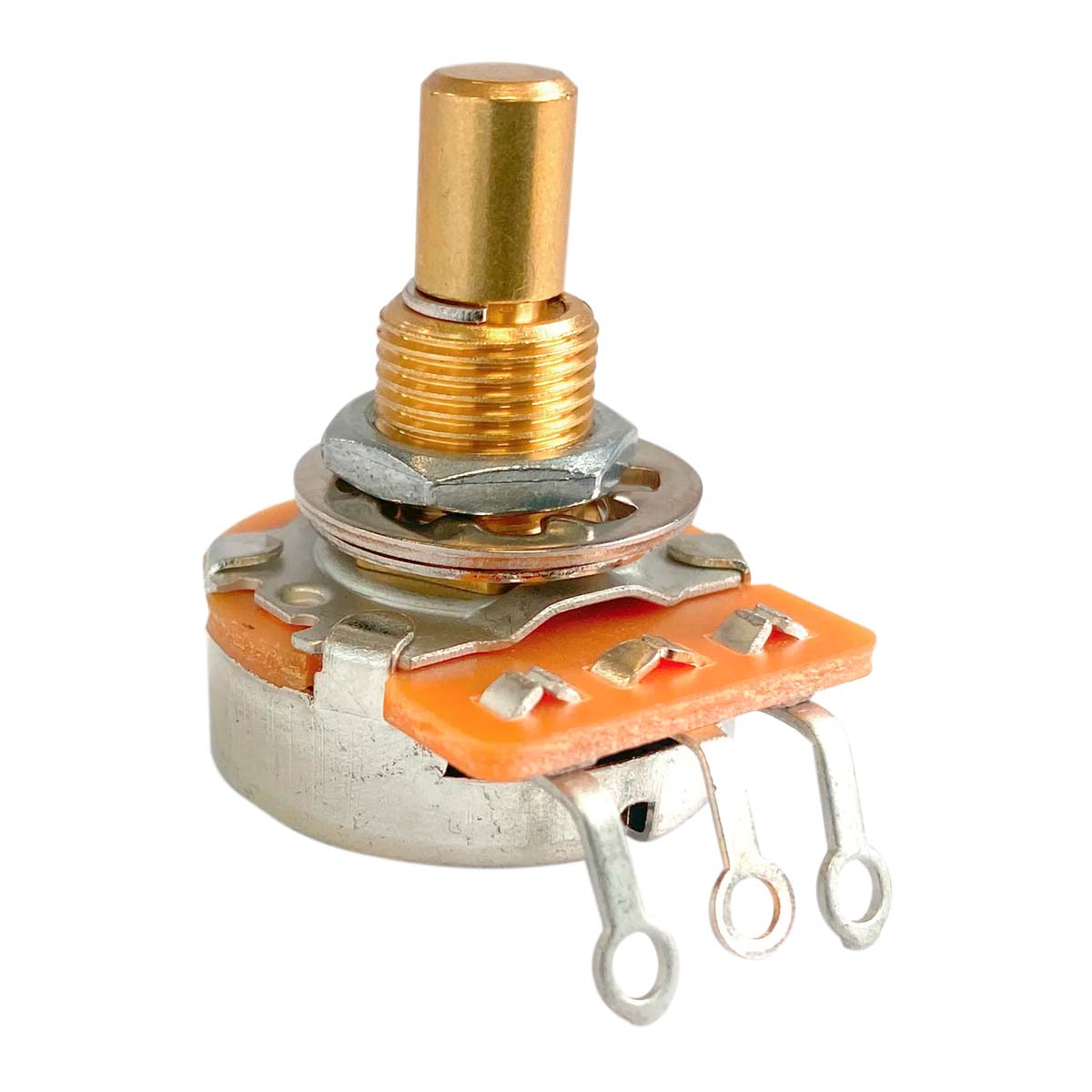 Los potenciómetros AxLabs cuentan con manguitos de eje de latón mecanizados y están lubricados con 3 tipos diferentes de grasa utilizada en áreas específicas de las piezas móviles para una rotación ultrasuave. Luego, los ejes se refuerzan con un anillo de retención colocado para mayor resistencia y reducir la fricción. Por último, se utilizó una carcasa de acero niquelado para facilitar el agarre de la soldadura, así como para lograr el aspecto clásico y de alta gama de los potes antiguos.