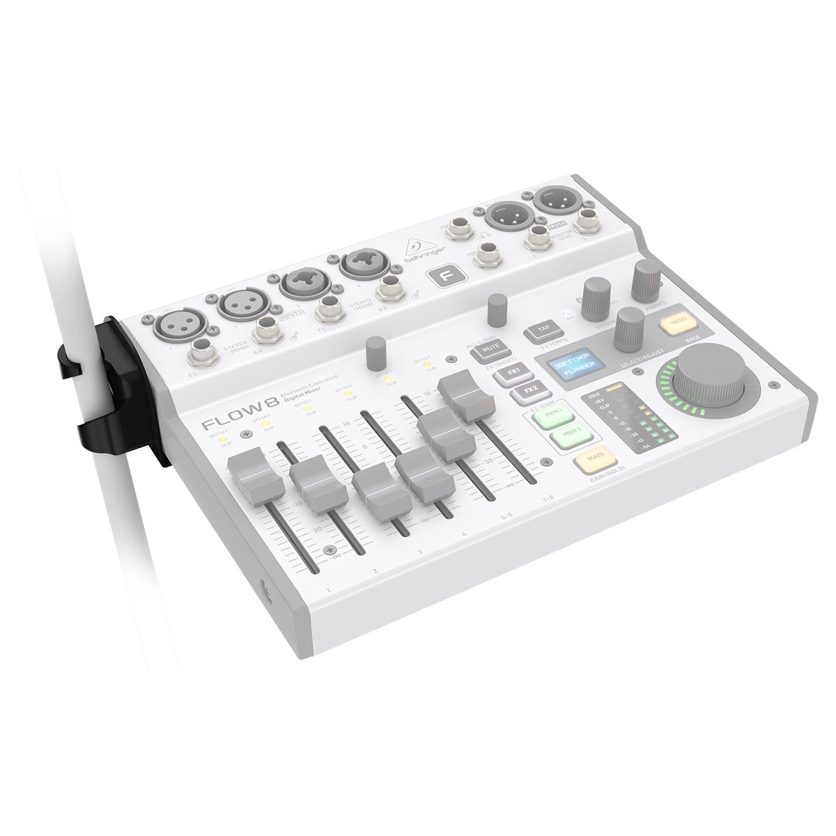 El FLOW CLAMP está diseñado para que tu mezcladora FLOW esté al alcance durante tu show. En el escenario para un concierto en un club pequeño o en una instalación de grabación, el mejor lugar será a menudo justo en el soporte de tu micrófono. Evita el desorden innecesario de cables y mantiene la superficie de control de tu mezcladora FLOW permanentemente accesible. La abrazadera está diseñada para soportes de micrófono estándar de 5/8″ de diámetro (que no superen los 16.5 mm).