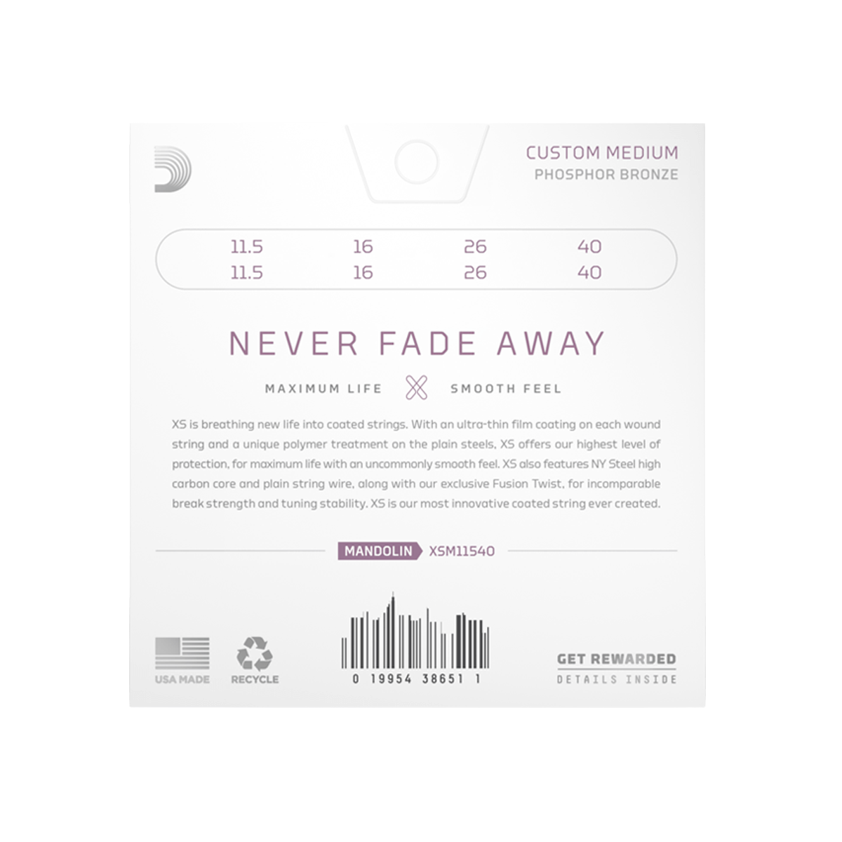 Juego de cuerdas para mandolina recubiertas XS Phosphor-Bronze calibre 11.5-40 (Custom Medium).