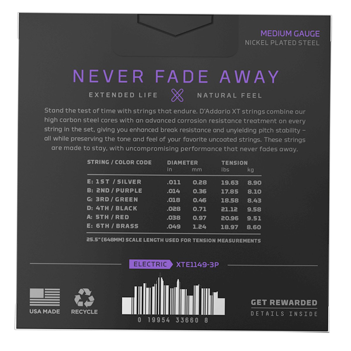 Las cuerdas eléctricas XT Nickel de D´Addario están diseñadas con un revestimiento avanzado resistente a la corrosión, que prolonga significativamente su vida útil mientras preserva el tono y la sensación naturales de las cuerdas sin revestimiento. Fabricadas con alambre envolvente de acero niquelado, estas cuerdas ofrecen un tono brillante y versátil, adecuado para una amplia variedad de géneros musicales. La tecnología Fusion Twist garantiza una mayor estabilidad de afinación, mientras que el núcleo de alambre NY Steel proporciona una resistencia excepcional a la rotura, incluso cuando las cuerdas están dobladas dos pasos más arriba, manteniéndose por debajo del 75% de su punto de rotura. Cada juego de cuerdas XT Nickel incluye un código en la bolsa VCI reciclable y resellable para registrar y ganar puntos en el programa Players Circle. Fabricadas en los EE. UU. según estrictas especificaciones en las instalaciones de producción de Nueva York, estas cuerdas garantizan calidad y rendimiento excepcionales para los guitarristas eléctricos.