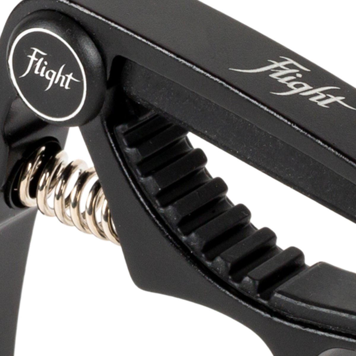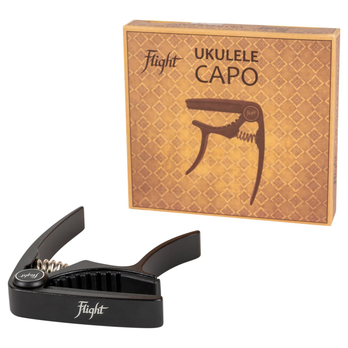 Flight ofrece una selección cada vez mayor de accesorios de ukelele como este capo. Cuenta con un tamaño específico para ukelele y está fabricado con aluminio. El mecanismo de resorte del capo te permite cambiar rápidamente la tonalidad de tu instrumento, permitiendo que tu música pueda volar en la tonalidad que tú elijas.