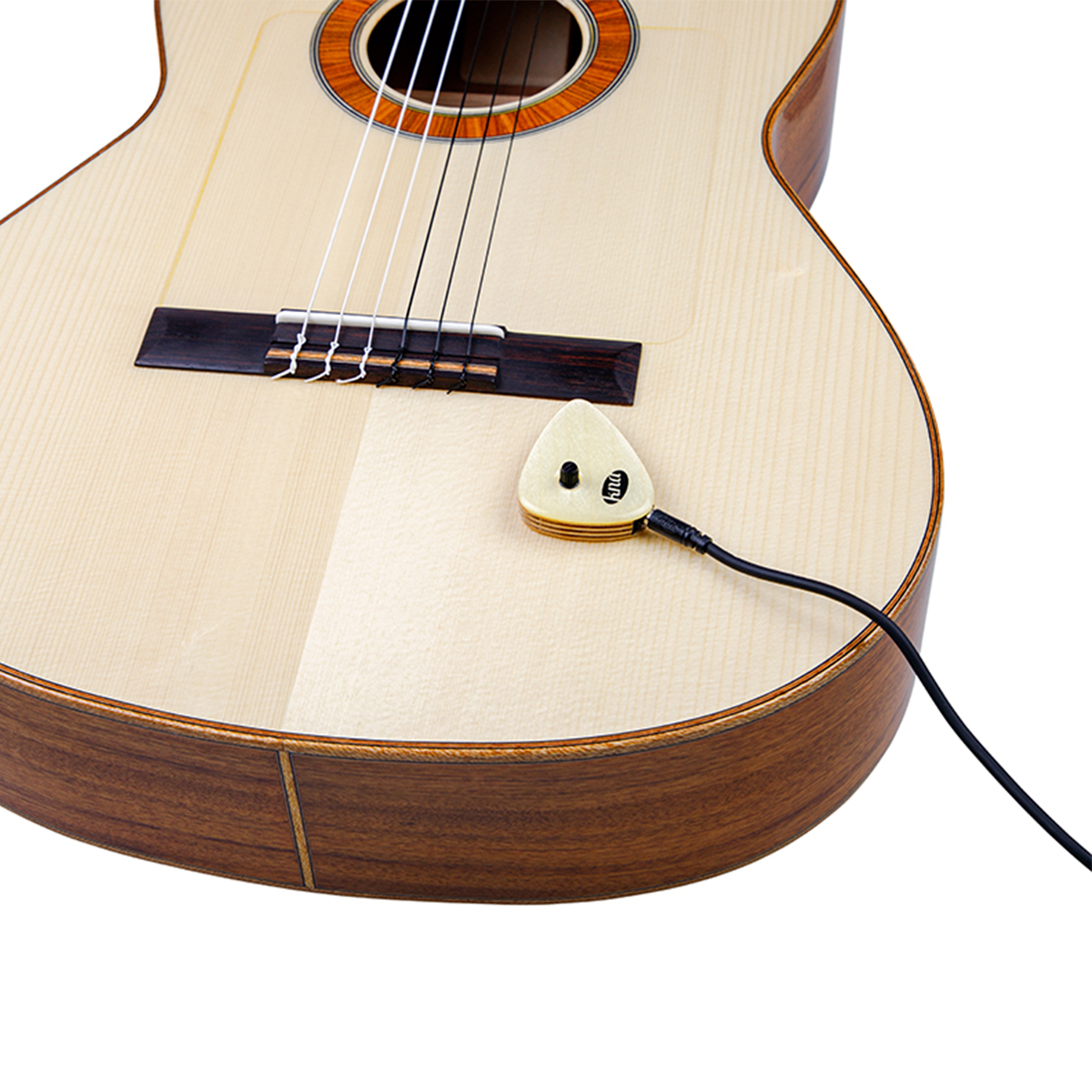 AP-2 es una pastilla de guitarra adhesiva ideal para músicos acústicos que buscan una solución fácil y efectiva para llevar su sonido a un amplificador y controlar el volumen desde el escenario.