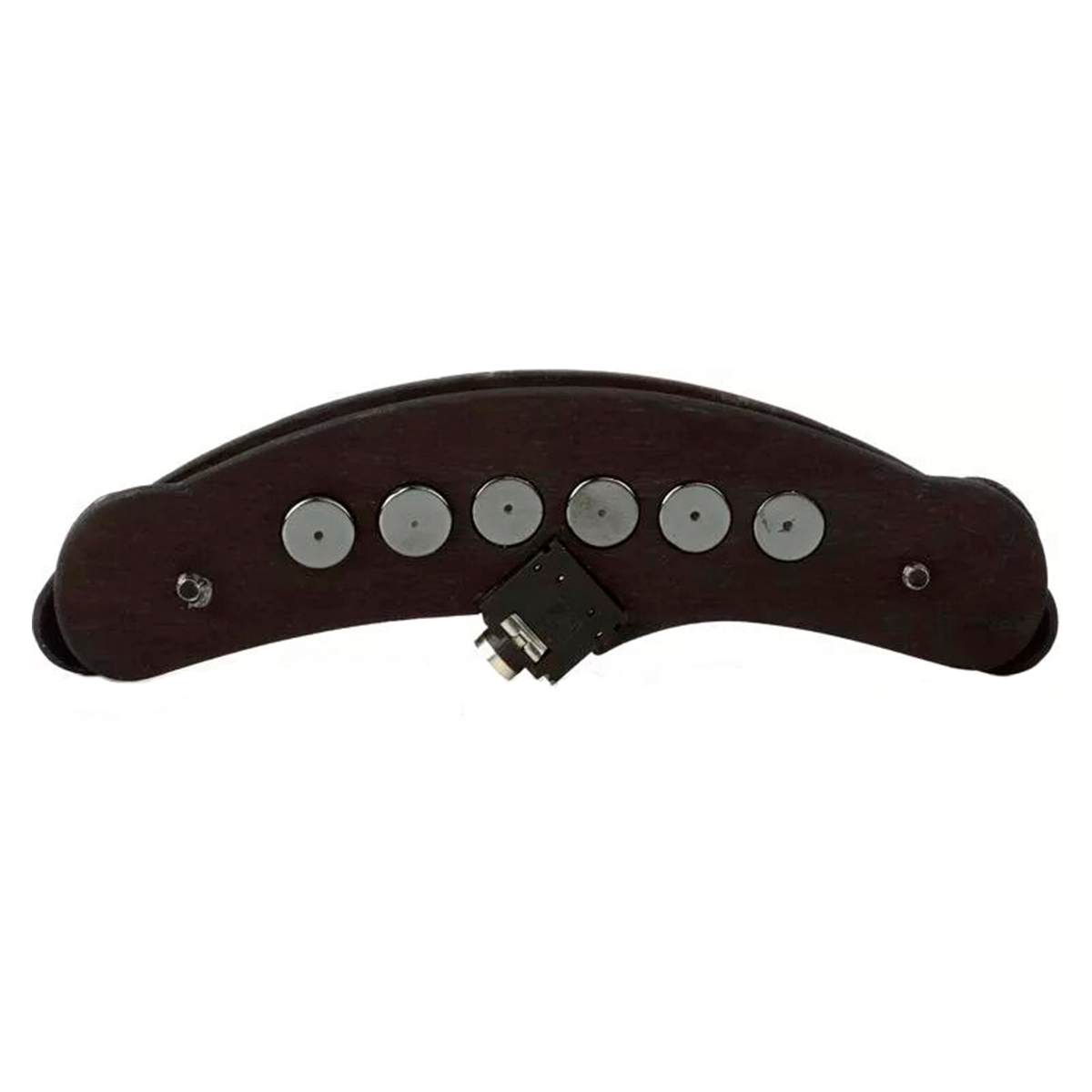 El SP-1 amplifica el sonido de su acústica con una combinación dinámica de claridad y equilibrio. Se instala sin modificaciones, simplemente coloque esta pastilla en la boca de la guitarra y apriete suavemente los tornillos de montaje hasta que quede firmemente montada en la parte superior. Los imanes están revestidos de caoba elegante y con estilo. El ensamblaje liviano ofrece la máxima sensibilidad tonal. Empleando el ataque rápido y articulado de los imanes de ferrita, el SP-1 amplifica el sonido de su acústica con una combinación dinámica de claridad y equilibrio. SP-1 tiene un diseño pasivo que reproduce el sonido natural del instrumento sin necesidad de batería. El acolchado de las abrazaderas superior e inferior evita arañazos, grietas y otros daños alrededor de la boca. Se incluye un cable de 1/8″ a 1/4″ para facilitar la conexión a un amplificador o mezclador.