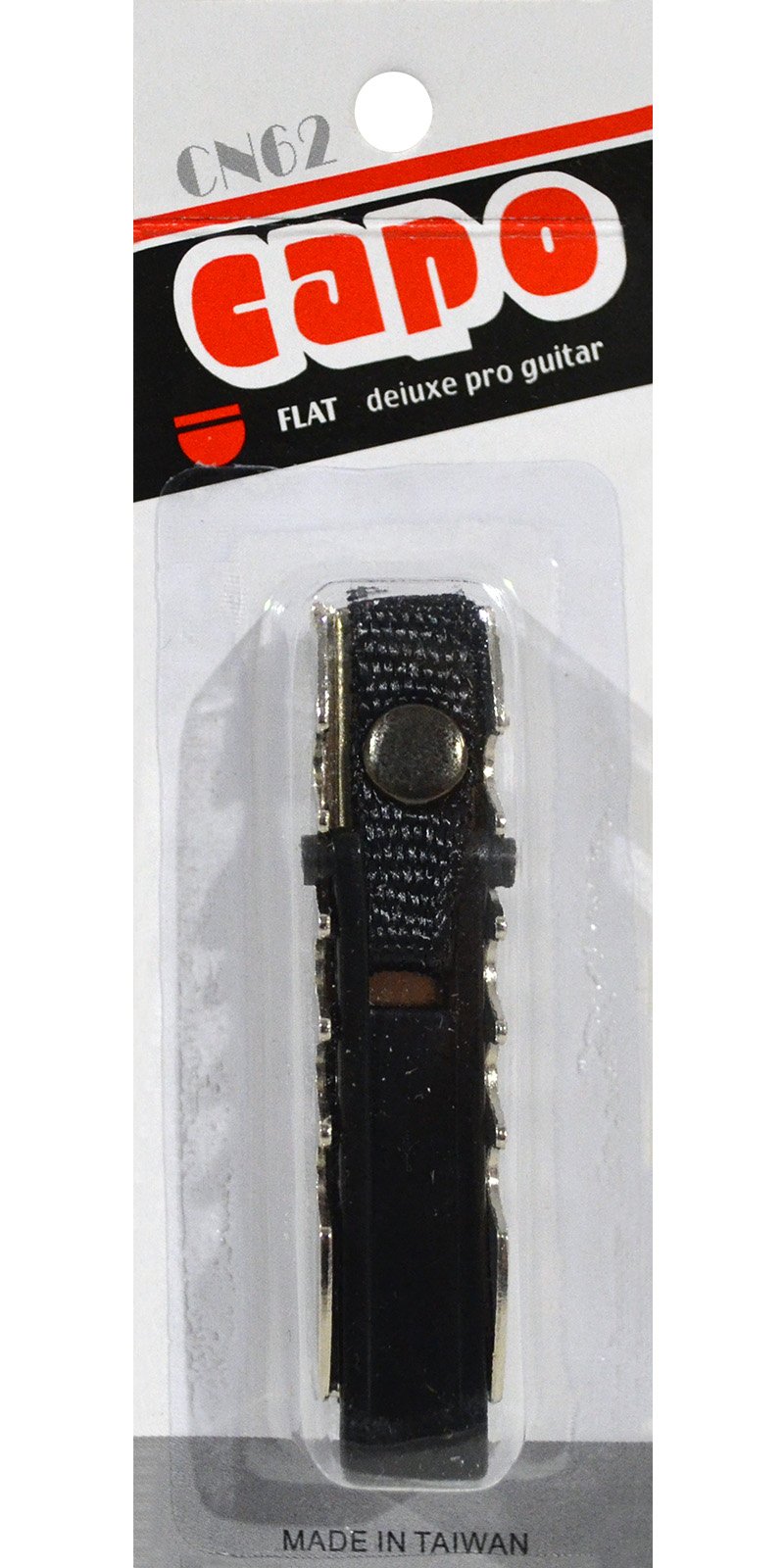 El capodastro New Beat CN-62 de la serie Flax Deluxe Pro Guitar cuenta con una de cinta de nylon, arnés de metal y seguro de plástico. Tiene un diseño recto y se ajusta al brazo de tu guitarra según la altura.