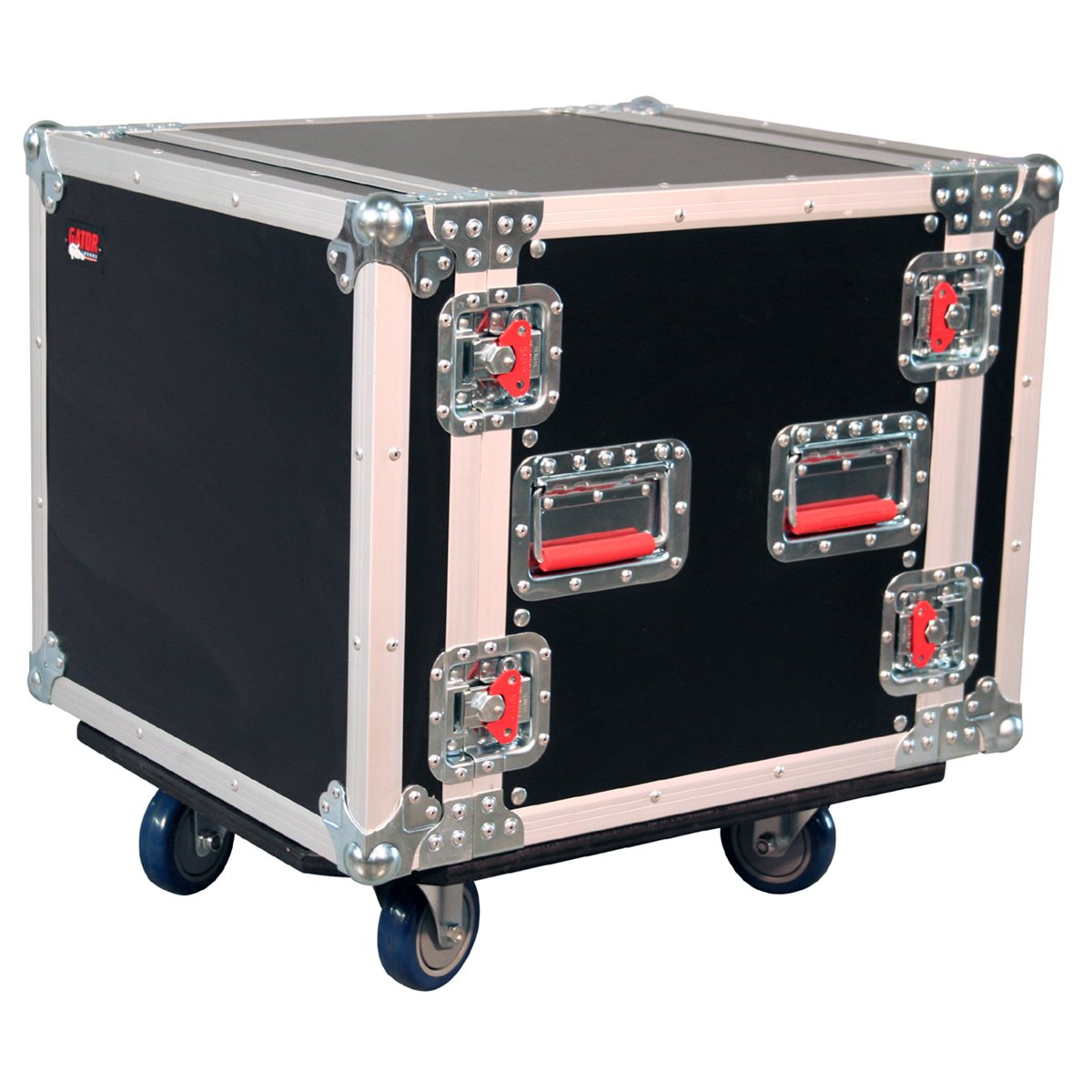 G-Tour 10U es un rack estándar de 6 unidades estilo Tour de 19″ construido según las especificaciones ATA. Tiene asas empotradas accionadas por resorte y cierres giratorios galvanizados de alta resistencia. Una profundidad de 19″ con tapa y rieles delanteros y traseros de servicio pesado. Cuenta con 4 ruedas de servicio pesado, dos de las cuales incluyen un sistema de bloqueo.
