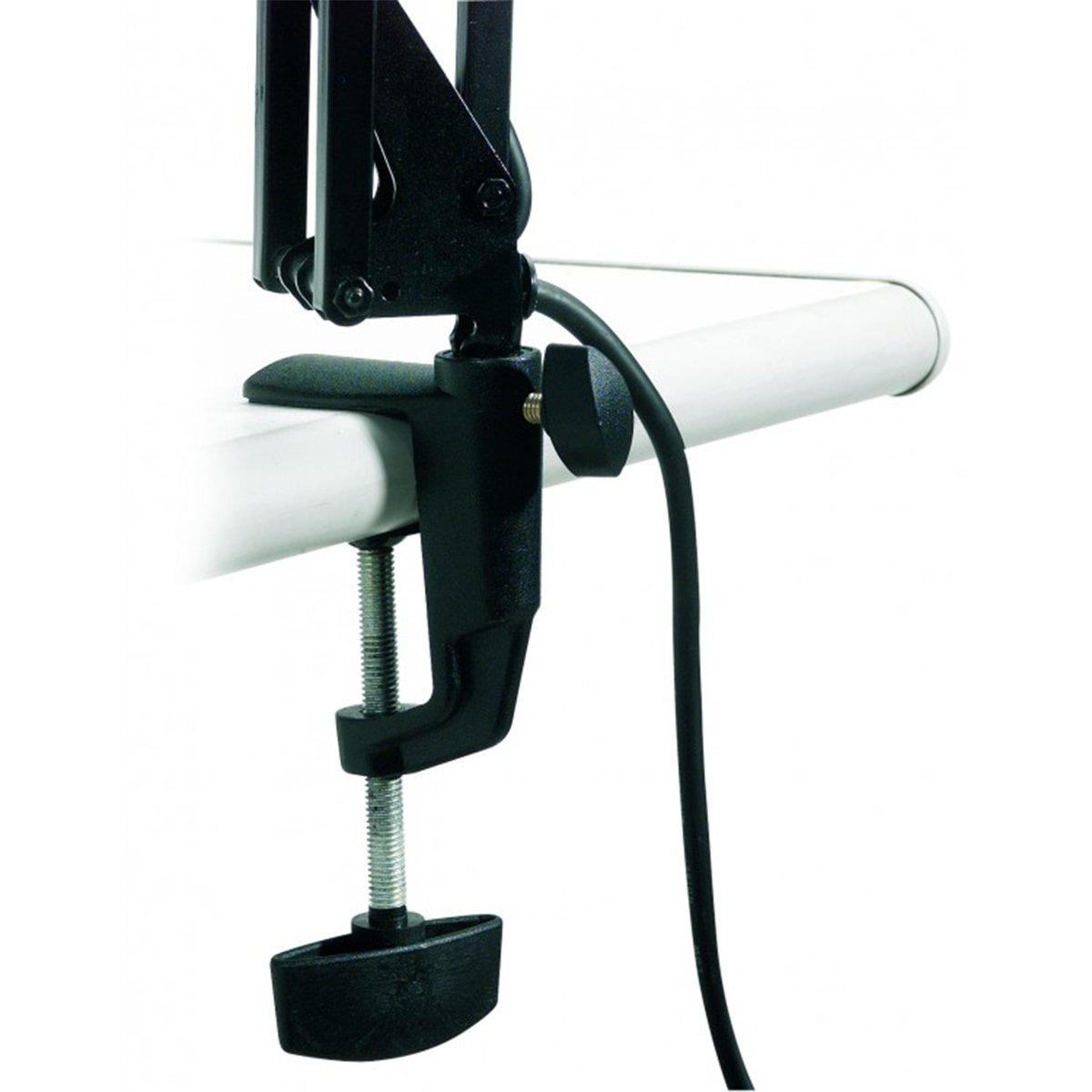 Soporte extensible para micrófono con base fija para escritorio y soporte de pinza para escritorio.